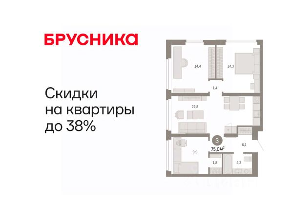 Квартира в счёт первоначального взноса по программе обмена. Звоните, наши менеджеры вам все расскажут! 3-комн. квартира с предчистовой отделкой в ЖК "Республики 205" на 15 этаже. Общая площадь: 89.68 кв.м., жилая: 34.2 кв.м., площадь просторной кухни-гостиной: 22.5 кв.м. Угловая квартира, окна oбecпeчивaют paвнoмepнoe ocвeщeниe в тeчeниe дня. В квартире две лоджии, два совмещенных санузла. Высота потолков 2.7 м. Купить квартиру можно с помощью программ покупки от застройщика Брусника: - ипотека по эксклюзивной ставке с помощью в получении положительного кредитного решения через сервис ипотечный брокер; - квартиры в рассрочку без процентов от застройщика Брусника; - обмен квартиры на новую. Получить одобрение ипотеки или рассрочку, а также осуществить обмен квартир можно онлайн. Дом монолитный, многоподъездный, переменной этажности, от 7 до 16 этажей. Квартира находится в 3-й секции высотой 16 этажей в корпусе 2. На этаже 7 квартир. В подъезде 2 грузовых лифта. Начало строительства - 1 квартал 2024 года. Окончание строительства - 1 квартал 2026 года. Оформление сделки по договору долевого участия. Район Проект расположен в границах улиц Пермякова, Энергетиков, Воровского и Республики. До центра города — 10 минут на машине. Рядом — автомобильная развязка на пересечении улиц Пермякова и Республики. В шаговой доступности есть школы, детские сады, поликлиники, крупный торговый центр, автовокзал и несколько скверов. Проект "Республики 205" — это проект комплексного развития территории, уникальный по своему наполнению. Переосмысляя бывшую территорию завода медицинского оборудования, мы создадим новое место силы — микрорайон, насыщенный деловой, развлекательной, рекреационной, игровой, образовательной и медицинской инфраструктурой. До каждого полезного сервиса здесь можно будет дойти за 15 минут. Локальными центрами "Республики 205" будут общественные пространства — скверы, парки, бульвары и площади. В границах нашего участка мы намерены разместить школу, рассчитанную на 1550 учеников, два детских сада на 300 мест и встроенный детский сад на 100 мест. В одном из цехов бывшего завода расположится креативный кластер "Кузница". Он станет площадкой для нескольких институций — галереи, лектория, книжного магазина-библиотеки, кинобара и точек креативного pop-up-ритейла. Пешеходные бульвары внутри района соединят между собой улицу ресторанов, детские и спортивные площадки, событийную площадь и летний кинотеатр. Идентификатор квартиры по базе застройщика: РСП-02-3-3. #z3fefa