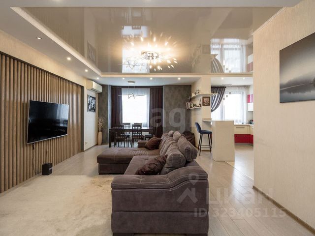 id:1304. Продается просторная и уютная квартира в доме бизнес-класса. Ремонт выполнен из современных и качественных материалов по дизайн - проекту. Ремонт делали для себя, продажа в связи с переездом в другой город. Состояние квартиры - заезжай и живи. Прекрасный вид из окна. Закрытый двор без машин обеспечивает приватность и безопасность внутри комплекса. На въезде находится пункт охраны. На территории всего комплекса осуществляется видеонаблюдение и работает противопожарная сигнализация. На внутренней территории расположены площадки для отдыха детей и взрослых, газоны. Территория асфальтирована и покрыта бетонной тротуарной плиткой, чистота домов и территории поддерживается ежедневной уборкой. Под жилым комплексом расположен подземный теплый паркинг с отдельным въездом, из паркинга лифт в подъезд. Благодаря подземному паркингу ваш автомобиль будет всегда в чистоте и сохранности. Расположение комплекса в центре города дает максимум преимуществ в экономии времени, так как рядом расположено все необходимое для комфортной жизни, а именно готовая инфраструктура: продуктовые магазины, отделения банков, магазины, салоны красоты, культурные заведения города, объекты основного и дополнительного образования. В самой квартире высота потолков 2,7 м, установлены приборы учета электроэнергии, воды, тепловой энергии, алюминиевые радиаторы, медная электропроводка, пожарная сигнализация. Установленные пластиковые окна с тройным стеклопакетом и лоджии с одинарным, на входе - металлическая сейф-дверь.