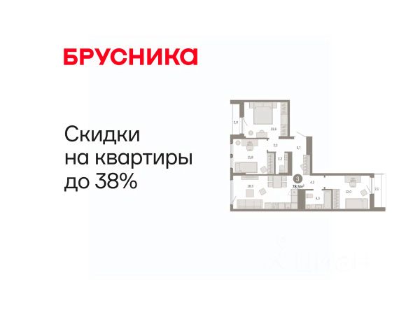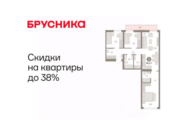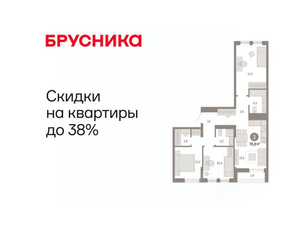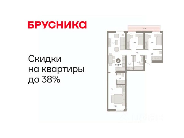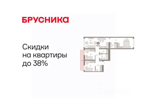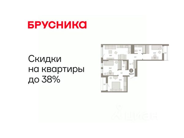 Эксклюзивные ипотечные условия. Квартира в рассрочку без процентов от застройщика. Дом будет сдан в 4 квартале 2025 года. Информация по телефону, мы вам все подробно расскажем! Просторная трехкомнатная квартира с предчистовой отделкой в ЖК "Республики 205" на 9 этаже. Общая площадь: 77 кв.м., жилая: 31.7 кв.м., площадь просторной кухни-гостиной: 14.7 кв.м. Квартира - распашонка, без проходных комнат, окна выходят на paзные стороны дома. В квартире две лоджии, два совмещенных санузла. Высота потолков 2.6 м. Купить квартиру можно с помощью программ покупки от застройщика Брусника: - ипотека по эксклюзивной ставке с помощью в получении положительного кредитного решения через сервис ипотечный брокер; - квартиры в рассрочку без процентов от застройщика Брусника; - обмен квартиры на новую. Получить одобрение ипотеки или рассрочку, а также осуществить обмен квартир можно онлайн. Дом монолитный, многоподъездный, переменной этажности, от 9 до 17 этажей. Квартира находится в 7-й секции высотой 9 этажей в корпусе 1. На этаже 6 квартир. В подъезде 1 грузовой лифт. Начало строительства - 2 квартал 2023 года. Окончание строительства - 4 квартал 2025 года. Оформление сделки по договору долевого участия. Район Проект расположен в границах улиц Пермякова, Энергетиков, Воровского и Республики. До центра города — 10 минут на машине. Рядом — автомобильная развязка на пересечении улиц Пермякова и Республики. В шаговой доступности есть школы, детские сады, поликлиники, крупный торговый центр, автовокзал и несколько скверов. Проект "Республики 205" — это проект комплексного развития территории, уникальный по своему наполнению. Переосмысляя бывшую территорию завода медицинского оборудования, мы создадим новое место силы — микрорайон, насыщенный деловой, развлекательной, рекреационной, игровой, образовательной и медицинской инфраструктурой. До каждого полезного сервиса здесь можно будет дойти за 15 минут. Локальными центрами "Республики 205" будут общественные пространства — скверы, парки, бульвары и площади. В границах нашего участка мы намерены разместить школу, рассчитанную на 1550 учеников, два детских сада на 300 мест и встроенный детский сад на 100 мест. В одном из цехов бывшего завода расположится креативный кластер "Кузница". Он станет площадкой для нескольких институций — галереи, лектория, книжного магазина-библиотеки, кинобара и точек креативного pop-up-ритейла. Пешеходные бульвары внутри района соединят между собой улицу ресторанов, детские и спортивные площадки, событийную площадь и летний кинотеатр. Идентификатор квартиры по базе застройщика: МЕД01-01-7-7. #ZI9iA7