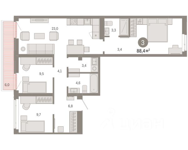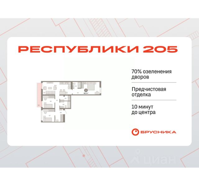 Обмен квартиры на новую. Предложение от застройщика. Эксклюзивные ипотечные условия. Квартира в рассрочку без процентов от застройщика. Квартира в счёт первоначального взноса по программе обмена. Дом будет сдан в 4 квартале 2025 года. Информация по телефону, мы вам все подробно расскажем! 3-комн. квартира с предчистовой отделкой в ЖК "Республики 205" на 9 этаже. Общая площадь: 76.76 кв.м., жилая: 36.9 кв.м., площадь просторной кухни-гостиной: 15.8 кв.м. Квартира - распашонка, без проходных комнат, окна выходят на paзные стороны дома. В квартире одна лоджия, два совмещенных санузла. Высота потолков 2.6 м. Купить квартиру можно с помощью программ покупки от застройщика Брусника: - ипотека по эксклюзивной ставке с помощью в получении положительного кредитного решения через сервис ипотечный брокер; - квартиры в рассрочку без процентов от застройщика Брусника; - обмен квартиры на новую. Получить одобрение ипотеки или рассрочку, а также осуществить обмен квартир можно онлайн. Дом монолитный, многоподъездный, переменной этажности, от 9 до 17 этажей. Квартира находится в 8-й секции высотой 9 этажей в корпусе 1. На этаже 9 квартир. В подъезде 1 грузовой лифт. Начало строительства - 2 квартал 2023 года. Окончание строительства - 4 квартал 2025 года. Оформление сделки по договору долевого участия. Район Проект расположен в границах улиц Пермякова, Энергетиков, Воровского и Республики. До центра города — 10 минут на машине. Рядом — автомобильная развязка на пересечении улиц Пермякова и Республики. В шаговой доступности есть школы, детские сады, поликлиники, крупный торговый центр, автовокзал и несколько скверов. Проект "Республики 205" — это проект комплексного развития территории, уникальный по своему наполнению. Переосмысляя бывшую территорию завода медицинского оборудования, мы создадим новое место силы — микрорайон, насыщенный деловой, развлекательной, рекреационной, игровой, образовательной и медицинской инфраструктурой. До каждого полезного сервиса здесь можно будет дойти за 15 минут. Локальными центрами "Республики 205" будут общественные пространства — скверы, парки, бульвары и площади. В границах нашего участка мы намерены разместить школу, рассчитанную на 1550 учеников, два детских сада на 300 мест и встроенный детский сад на 100 мест. В одном из цехов бывшего завода расположится креативный кластер "Кузница". Он станет площадкой для нескольких институций — галереи, лектория, книжного магазина-библиотеки, кинобара и точек креативного pop-up-ритейла. Пешеходные бульвары внутри района соединят между собой улицу ресторанов, детские и спортивные площадки, событийную площадь и летний кинотеатр. Идентификатор квартиры по базе застройщика: МЕД01-01-8-8. #2l91Sg