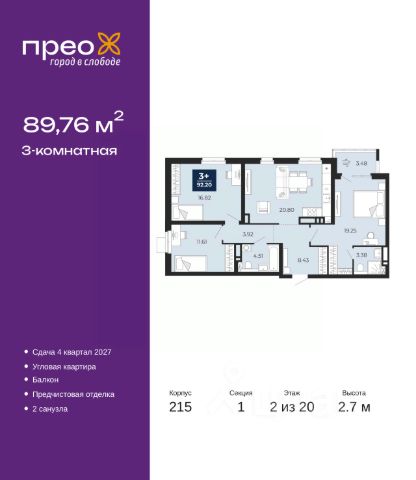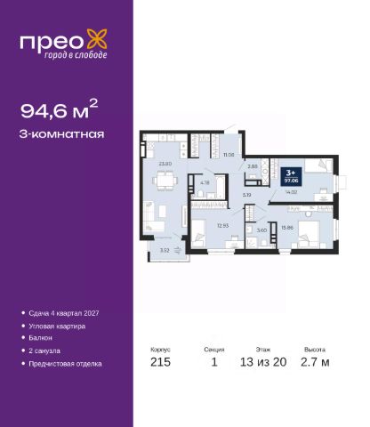 Продается 3-комн. квартира с предчистовой отделкой в ЖК "Прео" на 2 этаже. Общая площадь: 96.06 кв.м., жилая: 42.81 кв.м., площадь просторной кухни-столовой: 23.8 кв.м. Квартира угловая, идеально подойдет любителям тишины и панорамных видов. В квартире одна лоджия, два совмещенных санузла. Высота потолков 2.7 м. Квартира находится в корпусе 215. Дом монолитный, одноподъездный, высотой 20 этажей. На этаже 8 квартир. В подъезде 1 пассажирский и 1 грузовой лифт. Окончание строительства - 4 квартал 2027 года. Оформление сделки по договору долевого участия. Преображенский — один из самых привлекательных районов для жизни! Это полностью самостоятельный жилой район с точки зрения инфраструктуры. Преображенский находится между Московским и Червишевским трактами в квартале улиц Закалужская — Вьюжная — Александра Протозанова. Не нужно ждать, когда появится инфраструктура — переезжайте на всё готовое. Вблизи расположены действующие школа и детский сад. В этом году откроется еще один сад, а в следующем году — школа. По соседству с Преображенским запланировано строительство городского парка "Комарово" площадью 38 гектар. За 10 минут можно доехать на автомобиле до крупных ТРЦ: "Лента", "Кристалл", "Леруа Мерлен", "Метро" и "Ашан". С 2018 года в районе открыт Соседский центр — пространство, созданное для формирования добрососедской среды, совместного досуга, общения и реализации соседских инициатив. Здесь проходят встречи соседей, а также сами жители района организовывают мероприятия. Организатором такого события может стать любой желающий. В квартирах выполнена качественная предчистовая отделка. Гладкие стены с финишным выравниванием по маякам. Ровный потолок для установки натяжного потолка. Установлены пятикамерные окна с двойным стеклопакетом (3 стекла). Дизайнерские холлы с видеонаблюдением, безбарьерным и прозрачным входом всегда светло и спокойно. На первом этаже есть просторные колясочные, где все жители могут оставлять свои коляски и велосипеды. В Преображенском есть всё, что нужно для активного отдыха и занятий спортом. Мы сделали большое футбольное поле с безопасным покрытием. Также установили хоккейный корт, который оборудован по всем необходимым стандартам. Во дворах можно делать упражнения на специальных площадках с турниками. Весь район мы обустроили велодорожками, которые связаны в единый маршрут. У нас есть сухие фонтаны, бьющие из земли, деревья, веревки, сетки, скалодром, газон, песок и резинка — осталось просто дать своему ребенку право на свободную игру. По-настоящему хорошие дворы — это те, которые дети предпочитают соцсетям и телевизору. Аккредитация в банках: ОАО "Альфа-Банк", "Сбербанк России", ПАО "Банк Уралсиб", ПАО "Газпромбанк", ПАО Банк "ВТБ" и других. #ZM8Ail