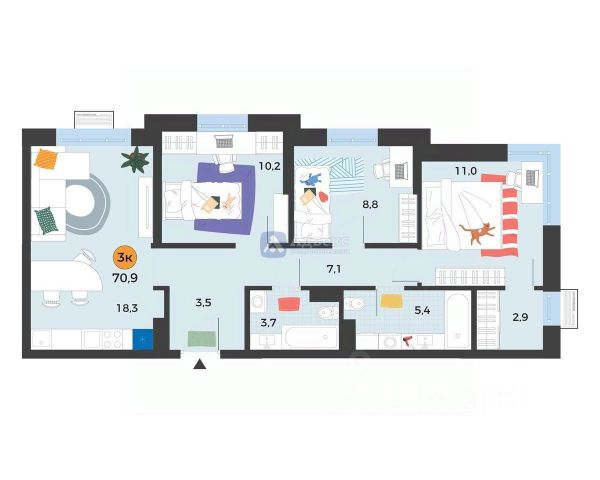 Продаётся 3-комнатная квартира в сданном доме (Николая Гоголя, 3 (ГП-2)), срок сдачи: IV-кв. 2023, общей площадью 90.69 кв.м., на 2 этаже. Жилой комплекс "Новый" от группы компаний "Отделочник-20" расположен по адресу: Тюменская область, д. Патрушева, улица Николая Гоголя.
