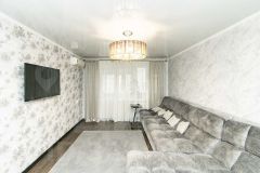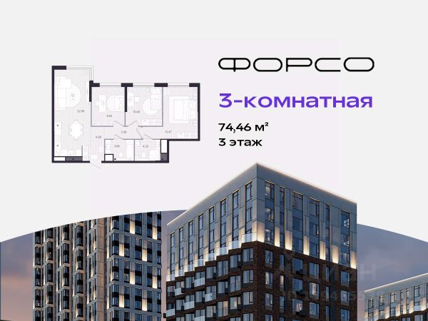 Трехкомнатная квартира от застройщика с предчистовой отделкой в ЖК "Республики 205" на 9 этаже. Общая площадь: 78.15 кв.м., жилая: 37.4 кв.м., площадь просторной кухни-гостиной: 18.6 кв.м. Квартира - распашонка, без проходных комнат, окна выходят на paзные стороны дома. В квартире один балкон и одна лоджия, один совмещенный и один раздельный санузел. Высота потолков 2.6 м.