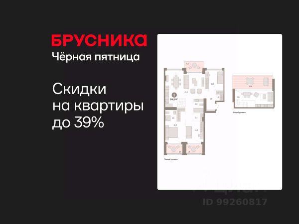 Двухуровневая квартира с кухней-гостиной и тремя спальнями в Доме у озера. Особенности планировки: второй санузел, окно в коридоре, гардеробная, двухуровневая, вид во двор, тёплая лоджия, лоджия, разнесённые спальни, предчистовая отделка, мастер-спальня, балкон, терраса на крыше.