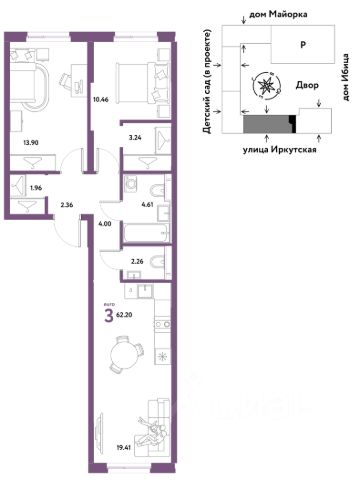 Продаётся 3-комнатная квартира в строящемся доме (Дом Тенерифе (ГП-2Я)), срок сдачи: IV-кв. 2027, общей площадью 57.57 кв.м., на 7 этаже. Новый жилой комплекс "Остров-сад" от Специализированного застройщика "Страна. Коммунистическая" расположен по адресу: г. Тюмень, по ул. Ярославская.