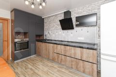 19-этажная архитектурная доминанта с эффектом паруса и камерная секция: французские балконы, сити-хаусы на 1-м этаже, 9 этажей в доме. Уступчатая структура формирует динамичный силуэт — новый акцент ул. Полевая. Металлические балконы создают градиент от тёмного к светлому, большие окна — панорамные виды на город.