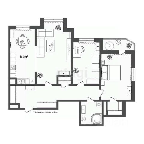 Включает в себя-комфортный коридор со встроенным шкафом до потолка, по правую руку мастер спальня со своим санузлом и выходом на панорамный балкон. По левую руку мини сердце дома,где разводка обогрева полов и тд,связанное с управлением дома. Кухня -гостиная впечатляет своими размерами:11,88м2 зона кухни и кухонного гарнитура,а в продолжении 13,64м2-зона обеда и встречи всей семьи. +вокруг огромного окна установлены до потолка места для хранения важных вещей. В квартире еще один просторный санузел и две раздельные комнаты для еще 2-х членов семьи! Очень много света и простора!