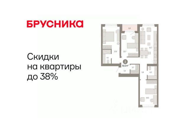 Продается 3-комн. квартира с предчистовой отделкой в Кварталы "На Минской" на 2 этаже. Общая площадь: 104.05 кв.м. Высота потолков 2.7 м. Дом монолитный, многоподъездный, переменной этажности, от 7 до 11 этажей. Квартира находится в 3-й секции высотой 7 этажей в корпусе 2. На этаже 5 квартир. В подъезде 1 пассажирский и 1 грузовой лифт. Окончание строительства - 1 квартал 2027 года. Оформление сделки по договору долевого участия. Квартира с кухней-гостиной и тремя спальнями в кварталах "На Минской". Особенности планировки: вид во двор, мастер-спальня, окна в пол, окна на две стороны, панорамное остекление, постирочная, предчистовая отделка, разнесённые спальни, терраса. квартиры в нашей базе: МНС02-Ж3.2.1. В сердце города Кварталы "На Минской" находятся в самом центре. За десять минут можно дойти до площади 400-летия Тюмени и Большого Драматического театра, Тюменского индустриального и медицинского университетов, спортивного комплекса "Строймаш", ТРЦ "Гудвин" и "Премьер", Тюменского технопарка. Поблизости много детских садов, школ и поликлиник. Пространство разного опыта Создавая кварталы "На Минской" мы вдохновлялись Хакскими дворами в Берлине и улицей Давида Агмашенебели в Тбилиси. И первые и вторая — яркие разнообразные пространства, сформированные прогрессивными архитекторами и притягивающие городских интеллектуалов. Престижная недвижимость здесь соседствует с барами, ресторанами, креативными кластерами и бюро, дизайнерскими лавками. Полезные улицы Кварталы "На Минской" свяжет сеть променадов, автомобильных проездов и велодорожек. Уличный фронт проекта мы сформируем с помощью аллейной посадки деревьев. Они создадут тень для ресторанов и кафе на первых этажах, визуально отделят проезжую и пешеходную части, снизят объём пыли и уровень шума. Мы реализуем проект в районе с развитой базовой инфраструктурой. И поэтому тщательно подошли к программированию коммерции, посчитав, что её основная задача — "закрывать" более высокие потребности жителей. Здесь может появиться пекарня с вкусными круассанами, турагентство на случай, если захочется перезимовать в Сочи, массажный кабинет, ресторан, когда надоело есть дома и многое другое. #zSZAWW Продается 3-комнатная квартира в микрорайоне Драмтеатр (Ленинский) в городе Тюмень.