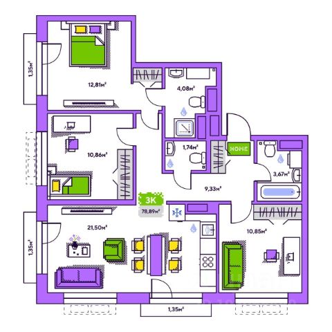 Квартира в счёт первоначального взноса по программе обмена. Квартира с кухней-гостиной и тремя спальнями в Октябрьском на Туре. Особенности планировки: гардеробная, вид во двор, разнесённые спальни, предчистовая отделка, мастер-спальня, балкон. квартиры в нашей базе: ОКТ09-Ж3.3.3. Район Проект расположен на берегу реки, в одном из самых живописных и экологичных районов Тюмени. За последние годы облик района изменился. По соседству с индивидуальной застройкой выросли многоквартирные дома. При проектировании "Октябрьского на Туре" нашей приоритетной задачей стало сохранение природного ландшафта: мы постарались деликатно вписать в него современную архитектуру. Квартал удачно расположен с точки зрения дорожной инфраструктуры. На автомобиле путь до центра города составит 15 минут. Добраться до набережной и главных тюменских достопримечательностей можно и на общественном транспорте. В пешей доступности находится автобусная остановка. Проект По мастер-плану здесь будет восемь домов. Ядро застройки составляют замкнутые кварталы переменной этажности. Их высотность понижается по мере приближения к реке. На углах участка мы разместили башни-доминанты. Одной из достопримечательностей квартала станет парк на Туре — здесь появится зеленая зона протяженностью около 6 километров для пеших и велопрогулок. Смысловая ось квартала — широкая главная улица с высаженными вдоль неё высокими деревьями. Они создают тень и работают как шумо- и пылезащитные экраны. Это место сосредоточения основных пешеходных и транспортных потоков, на сторону которых мы ориентировали большинство коммерческих помещений. Отсюда жители могут свернуть на тихие соседские улицы и попасть на внутриквартальную площадь — ещё одну точку притяжения.Квартира в счёт первоначального взноса по программе обмена. #ZWcDcU Продается 3-комнатная квартира в округе Калининский в городе Тюмень.