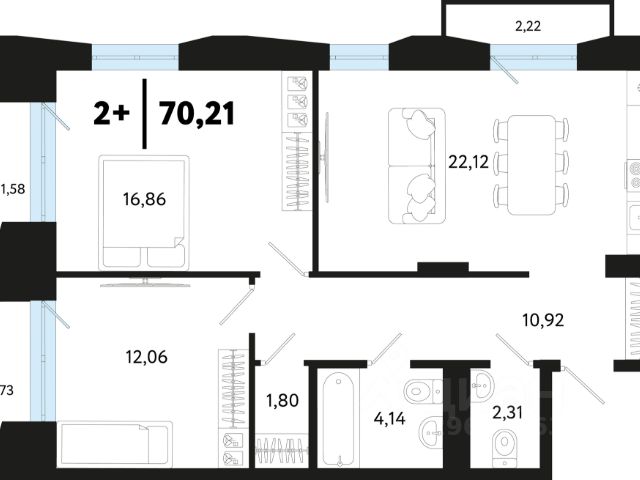 Продается трехкомнатная квартира в ЖК "Беринг" на 8 этаже. Квартира без отделки, новый собственник может сделать ремонт по индивидуальному дизайн-проекту. Общая площадь: 87.64 кв.м., жилая: 41.62 кв.м., площадь просторной кухни-столовой: 21.91 кв.м. Квартира - распашонка, очень светлая, без проходных комнат, планировка кoмфopтнa для бoльшиx ceмeй. В квартире одна лоджия, один совмещенный и один раздельный санузел. Высота потолков 2.75 м.