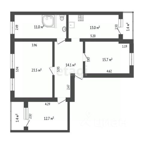 Просторная гостиная площадью 23,5 кв.м. и уютная спальня 12,7 кв.м. создают атмосферу уюта и гармонии. Санузел площадью 11 кв.м. и детская комната 15,7 кв.м. обеспечивают максимальное удобство для всех членов семьи. Окна квартиры выходят на север и юг, что наполняет пространство светом и теплом в течение всего дня.