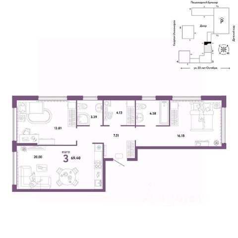 Объявление от застройщика Страна Девелопмент. Покупка квартиры защищена банком. Продается 3комнатная квартира на 5 этаже от застройщика Страна Девелопмент. Площадь квартиры 69,4 кв. м. Стоимость указана без учета акций. Флагманский проект "Сердце Сибири" расположился всего в 5 минутах езды от центра Тюмени, на пересечении улиц Харьковской — Пермякова — 50 лет Октября. По проекту в новом жилом микрорайоне будет построено 8 домов переменной этажности от 7 до 25 этажей с многоуровневыми паркингами, большим бульваром "Тропа Сибири" для пеших прогулок и новым детским садом под окнами. Дома квартального типа образуют тихие приватные дворы, закрытые от машин и случайных прохожих. Четвертый дом получил название "Квартал Строителей". Класс жилья - "Комфорт плюс". Дом будет сдан в IV квартале 2023 года. Квартиры сдаются с предчистовой отделкой. Все грязные работы выполнены: произведена разводка электричества и отопления; выполнена стяжка пола; стены выровнены "под маяк". В квартире установлены розетки, выключатели и радиаторы. На входе — надежная стальная дверь. Вам остается только выбрать материалы и начать ремонт. В "Сердце Сибири" можно воспользоваться опцией — "Ремонт от застройщика". Квартира с ремонтом избавит вас от хлопот и сэкономит время. У вас есть выбор из трех цветовых решений и возможность включить стоимость ремонта в ипотеку. После получения ключей можно завозить мебель и праздновать новоселье. Более подробная информация по телефону. Продается 3-комнатная квартира на улице 50 лет Октября в городе Тюмень.