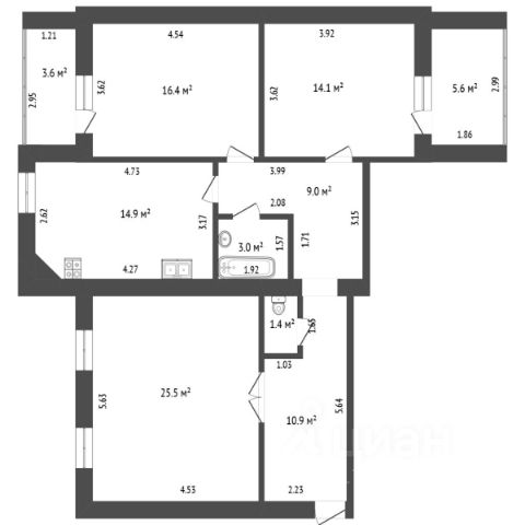 Общая площадь: 48.3 кв.м, жилая - 27.7 кв.м.