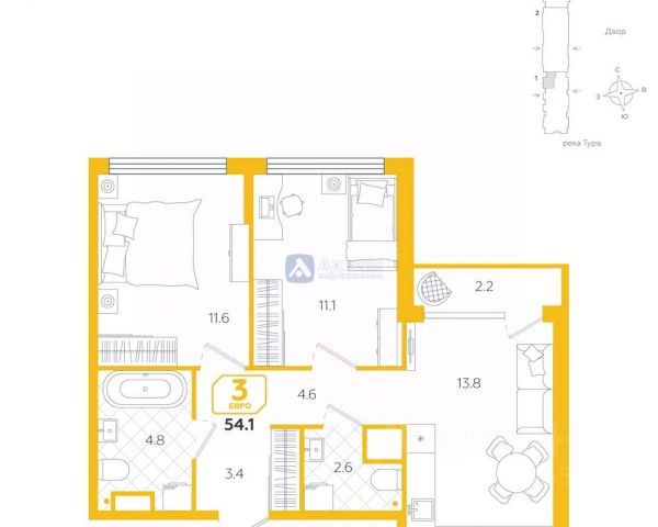 - Квартира расположена в секции, максимально близкой к реке, что обеспечивает не только живописные виды, но и свежий воздух.