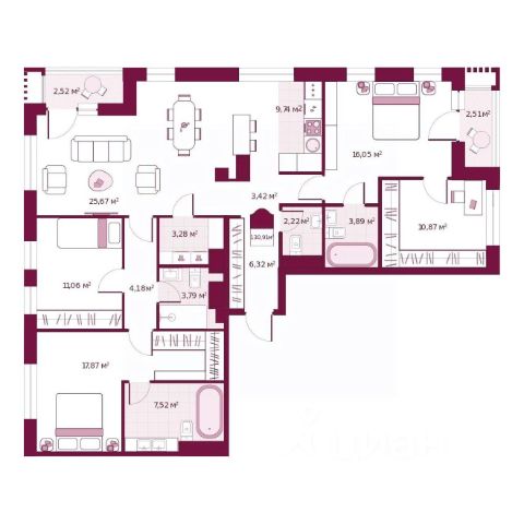 4-комн. квартира с предчистовой отделкой в Кварталы "На Минской" на 7 этаже. Общая площадь: 197.13 кв.м. Высота потолков 2.7 м. Дом монолитный, многоподъездный, переменной этажности, от 7 до 11 этажей. Квартира находится в 9-й секции высотой 7 этажей в корпусе 2. На этаже 7 квартир. В подъезде 1 пассажирский и 1 грузовой лифт. Окончание строительства - 1 квартал 2027 года. Оформление сделки по договору долевого участия. Квартира с кухней-гостиной и четырьмя спальнями в кварталах "На Минской". Особенности планировки: балкон, вид во двор, гардеробная, мастер-спальня, окна в пол, постирочная, потолки 3 м и выше, предчистовая отделка, рабочий кабинет, разнесённые спальни, терраса на крыше. квартиры в нашей базе: МНС02-Ж9.7.1. В сердце города Кварталы "На Минской" находятся в самом центре. За десять минут можно дойти до площади 400-летия Тюмени и Большого Драматического театра, Тюменского индустриального и медицинского университетов, спортивного комплекса "Строймаш", ТРЦ "Гудвин" и "Премьер", Тюменского технопарка. Поблизости много детских садов, школ и поликлиник. Пространство разного опыта Создавая кварталы "На Минской" мы вдохновлялись Хакскими дворами в Берлине и улицей Давида Агмашенебели в Тбилиси. И первые и вторая — яркие разнообразные пространства, сформированные прогрессивными архитекторами и притягивающие городских интеллектуалов. Престижная недвижимость здесь соседствует с барами, ресторанами, креативными кластерами и бюро, дизайнерскими лавками. Полезные улицы Кварталы "На Минской" свяжет сеть променадов, автомобильных проездов и велодорожек. Уличный фронт проекта мы сформируем с помощью аллейной посадки деревьев. Они создадут тень для ресторанов и кафе на первых этажах, визуально отделят проезжую и пешеходную части, снизят объём пыли и уровень шума. Мы реализуем проект в районе с развитой базовой инфраструктурой. И поэтому тщательно подошли к программированию коммерции, посчитав, что её основная задача — "закрывать" более высокие потребности жителей. Здесь может появиться пекарня с вкусными круассанами, турагентство на случай, если захочется перезимовать в Сочи, массажный кабинет, ресторан, когда надоело есть дома и многое другое. #zstAd9