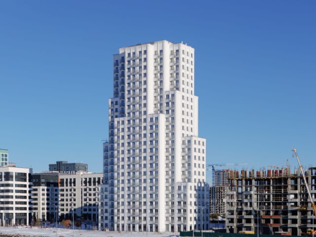 Дом монолитный, черырехподъездный, переменной этажности, от 12 до 14 этажей. Квартира находится в 3-й секции высотой 12 этажей в корпусе ГП-8. На этаже 5 квартир. В подъезде 1 пассажирский и 1 грузовой лифт. Окончание строительства - 2 квартал 2026 года. Оформление сделки по договору долевого участия.