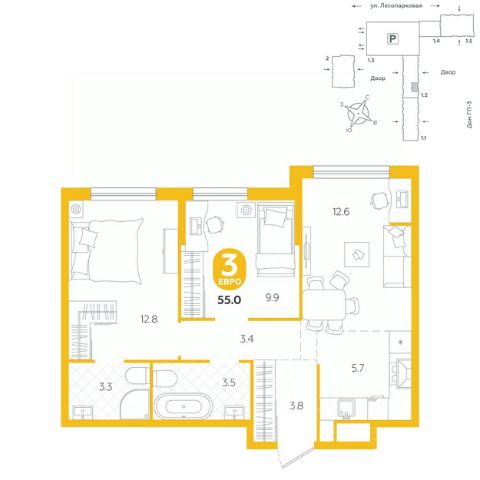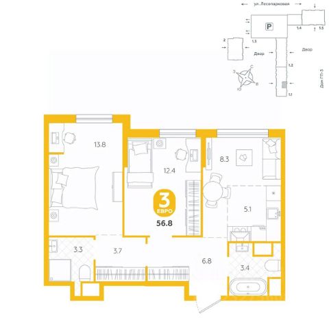 Квартира располагается в ГК "Чистые Пруды" от "Паритет девелопмент". Это флагманский проект компании в Тюмени. Расположение вдали от шумных улиц и оживленного центра создает ощущение жизни на природе и окружает тишиной и спокойствием. Есть вся необходимая социальная и коммерческая инфраструктура: магазины и сфера услуг на первых этажах. Школы, сады, поликлиника, парки в шаговой доступности. Квартал строится в районе Новой Лесобазы. Рядом выезд на объездную, что существенно экономит время. Поездка до центра города на автомобиле занимает 15-20 минут. Городские кварталы "Чистые Пруды" сформирован из домов переменной этажности и многоуровневых паркингов. Ввод 1 очереди строительства запланирован на II кв. 2028 года. Всё благоустройство квартала представлено двумя функциональными зонами: приватная внутри дворовая и общественная. Каждый закрытый двор имеет выход на единую променадную зону - бульвар. Концепция благоустройства основана на принципе модульности, что формирует основную идею приватности. Приватность проекта подчеркивает его особенный климат внутри. Модульное благоустройство позволит максимально эффективно использовать пространство двора и удовлетворить потребности различных категорий жителей. В квартирах базово выполнена улучшенная черновая отделка, которая включает в себя: выровненные стены, стяжка пола с шумоизоляцией, горизонтальная разводка отопления, установлены счетчики с телеметрией, окна с 5-камерным профилем и надежные входные двери. При желании можно добавить ремонт от застройщика и включить его в стоимость ипотеки, что позволит сэкономить на стройматериалах и переехать сразу после получения ключей. Характеристики квартиры: этаж - 12 количество комнат - 3 номер помещения - 248 площадь квартиры - 53,2 кв.мГармоничные пропорции и большие окна наполняют пространство светом, создавая уютную атмосферу. Умное зонирование позволяет удобно организовать как рабочую, так и жилую зоны, что особенно важно для современных жителей. Санузел спроектирован с учетом всех потребностей: здесь есть ванна и место для стиральной машины. Каждый метр квартиры используется с максимальной эффективностью, что делает эту планировку отличным выбором для тех, кто ценит комфорт и удобство. Продам 3-комнатную квартиру на улице Лесопарковая в городе Тюмень.