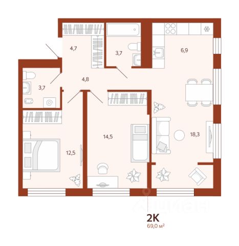 Продаётся 3-комнатная квартира в строящемся доме (ГП-1 (Новаторов, 28)), срок сдачи: IV-кв. 2025, общей площадью 69.9 кв.м., на 9 этаже. Новый жилой комплекс "Новатор" от застройщика ГК "СБК" расположен по адресу: г. Тюмень по ул. Новаторов.