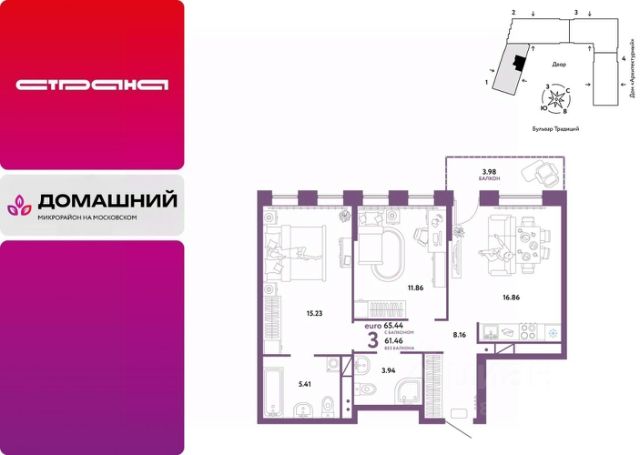 Объявление от застройщика Страна Девелопмент. Покупка квартиры защищена банком. Продается 3комнатная квартира на 11 этаже от застройщика Страна Девелопмент. Площадь квартиры 58,61 кв. м. О ПРOЕКТЕ Mикpорайон "Домaшний" — этo 6 очередей стpоитeльcтвa, 24 дома пеpемeннoй этажнoсти. Каждый дом уникальный. Внутри микрорайона появится огромный пешеходный бульвар — бульвар Традиций. Центром притяжения станут открытые пространства для отдыха жителей и гостей микрорайона, которые легко меняются под сезонные сценарии отдыха: новогодняя елка, ярмарки, кинопоказы и т.д. У каждого дома обустроен приватный двор с зонами для активного и спокойного отдыха. В активной зоне детские разновозрастные площадки с горками, песочницами и качелями, воркаут-зоны. В спокойной — скамейки, мини-амфитеатры, закрытые перголы. Уютной атмосферу сделает обильное озеленение и освещение "домашними" торшерами. ОТДЕЛКА Квартиры сдаются с предчистовой отделкой. Все грязные работы выполнены: произведена разводка электричества и отопления; выполнена стяжка пола; стены выровнены "под маяк". В квартире установлены розетки, выключатели и радиаторы. На входе — надежная стальная дверь. Вам остается только выбрать материалы и начать ремонт Доступна опция "Ремонт от застройщика". Стоимость можно включить в ипотеку. КУХНЯ С ТЕХНИКОЙ Теперь дополнительно к ремонту можно заказать кухню со встроенной техникой. Эргономику и функциональное наполнение разработали под каждую планировку. ПОЛНАЯ МЕБЛИРОВКА Больше не нужно тратить время даже на подбор, доставку и сборку мебели.Вы можете включить в стоимость квартиры с ремонтом полную меблировку. - Что входит в меблировку? - Кухня с техникой и сантехникой - Диван - Кровать - Шкаф в спальне - Шкаф в прихожей На консультации менеджер подскажет, какие акции действуют, и как получить одобрение по ипотеке с низкой ставкой. Более подробная информация по телефону. Застройщик ООО СЗ "Страна Запад". Проектные декларации на сайте наш.дом.рф. 3-комнатная квартира на улице Новоселов в городе Тюмень.