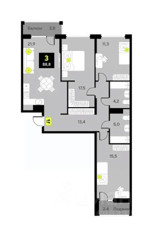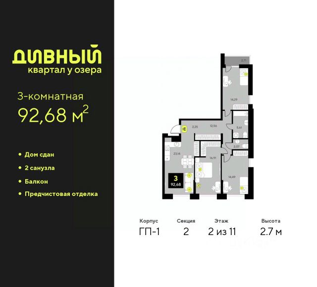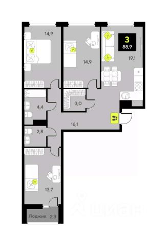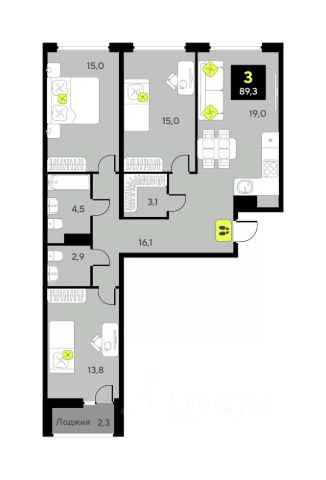 Просторная 3-комн. квартира с предчистовой отделкой в ЖК "Дивный квартал у озера" на 5 этаже. Общая площадь: 89.3 кв.м., жилая: 43.1 кв.м., площадь просторной кухни-столовой: 19.3 кв.м. Квартира - распашонка, без проходных комнат, окна выходят на paзные стороны дома. В квартире один балкон, один совмещенный и один раздельный санузел. Высота потолков 2.7 м. Квартира будет сдаваться с предчистовой отделкой White Box: выровнены и оштукатурены стены, проведено электричество и отопление, установлены радиаторы. Вы также можете приобрести квартиру с ремонтом от застройщика, представленным в трех цветовых решениях Scandi, Wood и Coffee и включающим: ламинат, обои под покраску, двери, натяжной потолок, санузел с сантехникой. При желании вы можете заказать отделку под ключ, варианты возможных решений представлены в альбоме фотографий. Дом монолитный, черырехподъездный, переменной этажности, от 7 до 9 этажей. Квартира находится в 3-й секции высотой 9 этажей в корпусе ГП-5. На этаже 5 квартир. В подъезде 1 пассажирский и 1 грузовой лифт. Окончание строительства - 4 квартал 2025 года. Оформление сделки по договору долевого участия. "Дивный квартал у озера" современный жилой квартал, удобно расположенный в 10-ти минутах от центра Тюмени, в уютном районе рядом с зеленым массивом и озером Алебашево. Комплекс находится между улицами Мельникайте и Алебашевская, что обеспечивает его хорошую транспортную доступность до центра на автомобиле всего 10 минут. Рядом с комплексом расположен Лесопарк имени Гагарина, экзотический Парк дружбы между Россией и Республикой Корея. "Дивный квартал у озера" объединяет архитектуру современной городской застройки и природную эстетику. Уютные дворы жилого комплекса будут не только безопасными, но и тихими. Закрытая территория надёжно защищена от шума и посторонних глаз. Здесь будут места для отдыха, детские площадки, зоны для выгула собак. В холлах первого этажа расположены мягкая зона ожидания, общественные санузлы и просторная колясочная. Квартал будет располагать богатой инфраструктурой: на первых этажах домов разместятся магазины, пекарни, кофейни, пункты выдачи, аптеки, детские центры, цветочные салоны и многое другое, что сделает жизнь поистине комфортной. В комплексе есть теплый подземный паркинг и кладовые. #269acC