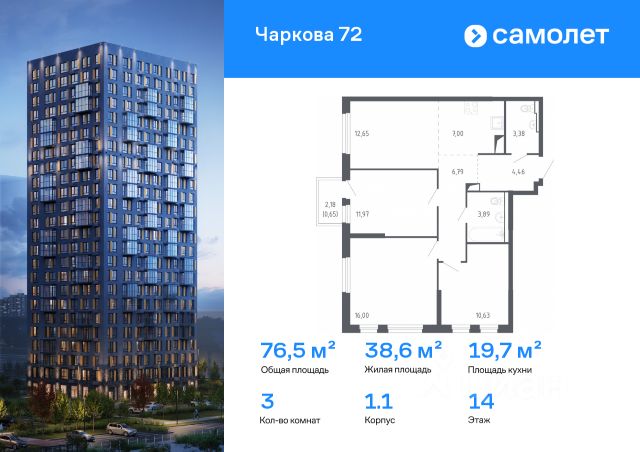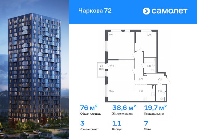 Строим кварталы для жизни с заботой о будущем. Предлагается 3-комнатная квартира комфорт-класса 66,61 кв.м в корпусе 1.3 на 16 этаже, в ЖК "Чаркова 72" Квартира с предчистовой отделкой. Доступность дополнительных опций уточняйте у застройщика. Приобрести квартиру возможно по специальным акциям от застройщика, с текущими условиями акций можно ознакомиться в блоке "Акций". Цена динамическая и может отличаться, уточняйте актуальность у застройщика. Идеальное сочетание городского комфорта и размеренной жизни — квартал "Чаркова 72" на северо-востоке города. В дизайне 17-24-этажных домов с панорамными балконами нашли отражение нотки сибирской природы. От "Чаркова 72" удобно добираться до центра города — всего 17 минут пути. А в 2 минутах от дома находится Тобольский тракт. Для семейного отдыха отлично подойдет парк Гагарина — он находится в 7 минутах от квартала. В закрытых дворах тихо и уютно — все авто остались на одном из 4 многоуровневых паркингов, которые находятся за территорией квартала. Можно спокойно гулять по бульвару и заниматься йогой на спортивной площадке. На первых этажах домов — кафе и магазины. Рядом с проектом — детские сады и школы, городская поликлиника и МФЦ. Во всех квартирах есть выводы под кондиционеры, на подземных этажах — индивидуальные кладовые, на первых — места для хранения велосипедов и колясок. В квартирах можно выбрать варианты отделки: чистовая, черновая и улучшенная из материалов повышенного класса.