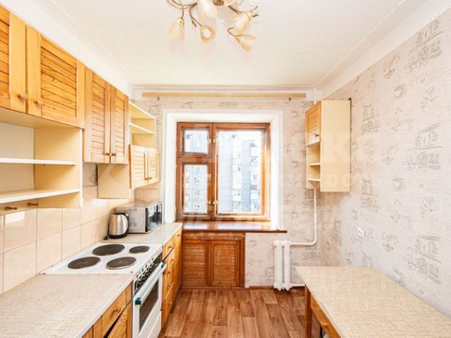 Квартира очень тёплая и, светлая, с типовым ремонтом: рамы и двери - из настоящего дерева, потолки - выровнены, с аккуратными элементами лепнины, на полу - линолеум, на стенах - свежие обои. Балкон застеклён, есть вместительный шкаф для хранения.