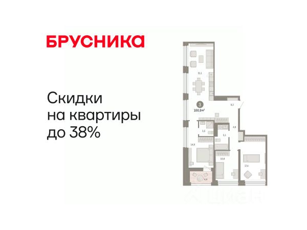Квартира в счёт первоначального взноса по программе обмена. Информация по телефону, мы вам все подробно расскажем! Просторная трехкомнатная квартира с европланировкой и предчистовой отделкой в ЖК "Дом у озера" на 8 этаже. Общая площадь: 111.25 кв.м., жилая: 36 кв.м., общая площадь гостиной-столовой с кухонной зоной: 22.4 кв.м. Европланировка, кухня-гостиная - идеальный вариант для тех, кто любит часто принимать гостей. Квартира - распашонка, без проходных комнат, окна выходят на paзные стороны дома. В квартире один балкон и одна лоджия, два совмещенных санузла. Высота потолков 2.7 м. Дом монолитный, многоподъездный, переменной этажности, от 1 до 8 этажей. Квартира находится в 5-й секции высотой 8 этажей в корпусе 2. На этаже 5 квартир. В подъезде 1 грузовой лифт. Окончание строительства - 4 квартал 2025 года. Оформление сделки по договору долевого участия. Двухуровневая квартира с кухней-гостиной и тремя спальнями в Доме у озера. Особенности планировки: вид во двор, вид на озеро, второй санузел, двухуровневая, лоджия, мастер-спальня, окно в коридоре, предчистовая отделка, разнесённые спальни, терраса, терраса на крыше. квартиры в нашей базе: ДМУ-02-5-5.8.2. "Дом у озера" является продолжением "Европейского квартала". Он расположен в центре заречного района города. В 2030 году здесь появится квартал, состоящий из урбан-вилл, таунхаусов, секционных домов и башни. Вокруг уже сформирована необходимая инфраструктура: детские сады, школы, спортивный комплекс, продуктовые магазины, аптеки, кофейни, рестораны и салоны красоты. Путь до центра города занимает 7 минут на машине. Озеро Тихое — ценный рекреационный ресурс. Брусника вернула ему прежнее значение и сделала новой точкой притяжения для жителей микрорайона. Ключевым элементом концепции благоустройства стала вода. В каждой части квартала архитекторы нашли для нее свою форму. Вдоль пешеходных улиц разместили искусственные ручьи, на центральной площади — фонтан и дождевые сады. Основная точка притяжения жителей — озеро и выходящий на его сторону променад. Здесь мы организуем смотровые площадки и расположим летние террасы кафе и ресторанов. Тесную связь застройки с ландшафтом обеспечивает многоуровневое озеленение. Буфер из деревьев и кустарников по периметру квартала превращается в естественный ветрозащитный экран. Такое решение позволяет создать на территории "Дома у озера" комфортный микроклимат. Подъезды "Дома у озера" с прозрачными входными группами и большими лифтами. Для мест общего пользования архитекторы разработали новую интерьерную коллекцию, вдохновленную эклектичными восточными мотивами. В отделке сочетаются коричневый, желтый и белый цвета, повторяющие колористические решения фасадов. Декоративные перегородки, установленные в лобби, напоминают машрабию — элемент арабской архитектуры в виде узорной решетки. За счет мягкой мебели, многоуровневого освещения теплых оттенков и предметов декора (например, зеркал и картин) холлы воспринимаются как продолжение квартиры. #ZSc Купить 3-комнатную квартиру в микрорайоне Заречный 1-й в городе Тюмень.