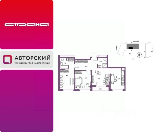 Новая квартира в ЖК "Авторский" напрямую от федерального застройщика "Страна Девелопмент". Продается 3комнатная квартира на 9 этаже от застройщика Страна Девелопмент. Площадь квартиры 68,99 кв. м. Жилой комплекс "Авторский" — квартал для авторов своей жизни от федерального застройщика "Страна Девелопмент" вблизи исторического центра — до Моста Влюблённых 4 минуты на авто, а ещё рядом ведущие вузы Тюмени. ПРЕИМУЩЕСТВА - Тематический бульвар объединяет дома и закрытые дворы квартала в единую экосистему: зелень, перголы для отдыха, детские и спортивные площадки. По вечерам бульвар преображается: освещение создаёт уютную атмосферу. - Новый детский сад рядом, который появится в 2026 году прямо в одном из корпусов комплекса. В нём выделено 150 мест для малышей. - Во дворах нет машин, шума, выхлопных газов и посторонних людей. Всё пространство разделено на зоны по интересам и возрастам. Для детей — игровые площадки из эко-материалов и мягкая защита от падений. Для взрослых — зоны отдыха, воркаут-площадки и тропинки для неспешных прогулок. ОТДЕЛКА Квартиры сдаются с предчистовой отделкой: произведена разводка электричества и отопления, выполнена стяжка пола, стены выровнены "под маяк", установлены розетки, выключатели и радиаторы. ДИЗАЙНЕРСКАЯ ОТДЕЛКА При покупке квартиры в ЖК "Авторский" можно включить стоимость ремонта в ипотеку. Пять вариантов на выбор: хлопковая нить, серый шторм, белый камень, шалфей, голубой вереск. СПОСОБЫ ПОКУПКИ Сотрудники "Страна Девелопмент" будут сопровождать вас на каждом этапе сделки, помогут получить одобрение по ипотеке или снизить ежемесячный платеж. - ипотека - рассрочка - с использованием материнского капитала -100% оплата наличными Цены на квартиры указаны без учета скидок. На консультации менеджер подскажет, какие акции действуют, и как получить одобрение по ипотеке с низкой ставкой.