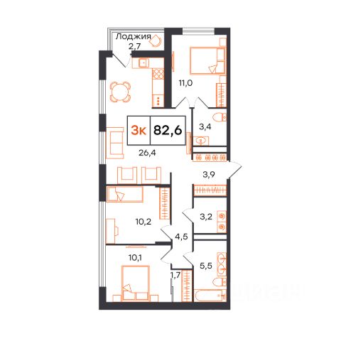 3-комн. квартира с продуманным пространством, сдается в предчистовой отделке в микрорайоне Чемпионский. Чемпионский микрорайон комплексного развития территории для комфортной и активной жизни. Монолитные дома переменной этажности от 12 до 24 этажей где каждая квартира наполнена светом, а из окна открываются завораживающие виды на заливные луга или на набережную реки Тура. Дом разделен на 3 секции, в которых предусмотрено от 2 до 3 грузопассажирских лифта. Окончание строительства - 4 квартал 2025 года. Архитектура Фасады выполнены в мягких, пастельных оттенках, подчеркивающих гармонию с окружающей средой. Для отделки использовали комбинацию гладких и фактурных штукатурок. Отдельного внимания заслуживают летние пространства: просторные балконы и уютные террасы украшают внешний облик зданий, придавая каждой постройке неповторимый характер. Подсветка фасада создает уютную атмосферу во время вечернего променада. Благоустройство Благоустройство выполнено по ландшафтному дизайну. Предусмотрено разноуровневое озеленение территории. Используется посадочный материал из местных питомников, адаптированный под климатические условия. По периметру здания благоустройство выполнено на уровне земли, имеются проезды и стоянки для автомобилей, пешеходные и велосипедные дорожки, зоны для отдыха. Безбарьерный вход в дизайнерские парадные, с теплым тамбуром и мягкими зонами ожидания. В закрытом дворе размещены детские спортивные площадки, скейтпарк, баскетбольная площадка, а также зоны отдыха взрослого населения. Здесь вы ощущаете гармонию с окружающим миром, наслаждаясь красотой природы в пределах города. Инфраструктура В шаговой доступности от жилого комплекса находятся: продуктовые магазины, пункты выдачи интернет-заказов, банкоматы, средняя общеобразовательная школа 38, общественный парк, остановка общественного транспорта.