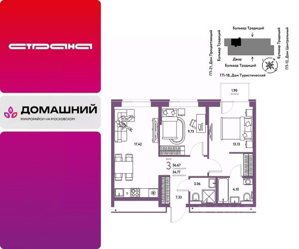 Новая квартира в ЖК "Домашний" напрямую от федеральной группы компаний "Страна Девелопмент". Финансовый партнер — банк "ДОМ.РФ". Продается 3комнатная квартира на 4 этаже от застройщика Страна Девелопмент. Площадь квартиры 60,8 кв. м. ЖК "ДОМАШНИЙ" Жилой комплекс "Домашний" это первый цифровой район в Сибири, где жители заходят в парадные по Face ID, автомобили заезжают в паркинг по сканированию номера, а лифт автоматически спускается на первый этаж при открытии домофона. Даже во дворах — USB-розетки и беседки с подогревом. ПРЕИМУЩЕСТВА -Школа, зеленый сквер и пешеходный бульвар прямо внутри квартала -Закрытые дворы у каждого дома для активного и спокойного отдыха -Охрана, видеонаблюдение 24/7 и доступ к камерам в мобильном приложении -Сквозные парадные с прозрачными входными группами, колясочными и велосипедными -Паркинг с въездом по считыванию номеров, системой контроля выбросов CO2, тележками для покупок и велопарковкой -Торговая галерея на первом этаже дома ОТДЕЛКА Квартиры сдаются с предчистовой отделкой: произведена разводка электричества и отопления, выполнена стяжка пола, стены выровнены "под маяк", установлены розетки, выключатели и радиаторы. ДИЗАЙНЕРСКАЯ ОТДЕЛКА При покупке квартиры в ЖК "Домашний" можно включить стоимость ремонта в ипотеку. Пять вариантов на выбор: Хлопковая нить, Серый шторм, Белый камень, Шалфей, Голубой вереск. СПОСОБЫ ПОКУПКИ Сотрудники "Страна Девелопмент" будут сопровождать вас на каждом этапе сделки, помогут получить одобрение по ипотеке или снизить ежемесячный платеж. - ипотека - материнский капитал -100% оплата наличными