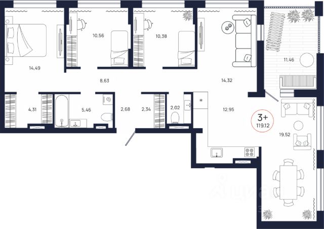 Кроме того, окна квартиры выходят на фонтаны, что создает приятную атмосферу и добавляет красоты в вашу жизнь.