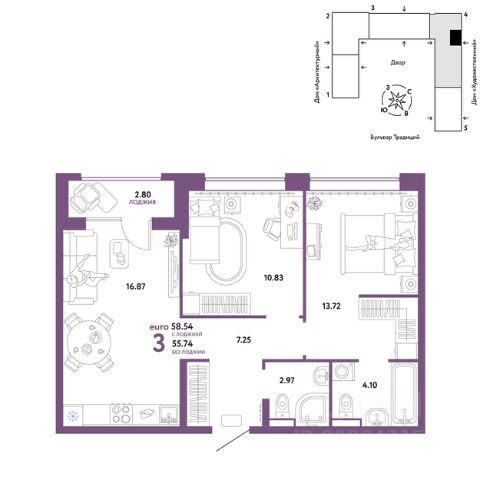 Новая квартира в ЖК "Домашний" напрямую от федеральной группы компаний "Страна Девелопмент". Финансовый партнер — банк "ДОМ.РФ". Продается 3комнатная квартира на 14 этаже от застройщика Страна Девелопмент. Площадь квартиры 57,35 кв. м. ЖК "ДОМАШНИЙ" Жилой комплекс "Домашний" это первый цифровой район в Сибири, где жители заходят в парадные по Face ID, автомобили заезжают в паркинг по сканированию номера, а лифт автоматически спускается на первый этаж при открытии домофона. Даже во дворах — USB-розетки и беседки с подогревом. ПРЕИМУЩЕСТВА -Школа, зеленый сквер и пешеходный бульвар прямо внутри квартала -Закрытые дворы у каждого дома для активного и спокойного отдыха -Охрана, видеонаблюдение 24/7 и доступ к камерам в мобильном приложении -Сквозные парадные с прозрачными входными группами, колясочными и велосипедными -Паркинг с въездом по считыванию номеров, системой контроля выбросов CO2, тележками для покупок и велопарковкой -Торговая галерея на первом этаже дома ОТДЕЛКА Квартиры сдаются с предчистовой отделкой: произведена разводка электричества и отопления, выполнена стяжка пола, стены выровнены "под маяк", установлены розетки, выключатели и радиаторы. ДИЗАЙНЕРСКАЯ ОТДЕЛКА При покупке квартиры в ЖК "Домашний" можно включить стоимость ремонта в ипотеку. Пять вариантов на выбор: Хлопковая нить, Серый шторм, Белый камень, Шалфей, Голубой вереск. СПОСОБЫ ПОКУПКИ Сотрудники "Страна Девелопмент" будут сопровождать вас на каждом этапе сделки, помогут получить одобрение по ипотеке или снизить ежемесячный платеж. - ипотека - материнский капитал -100% оплата наличными
