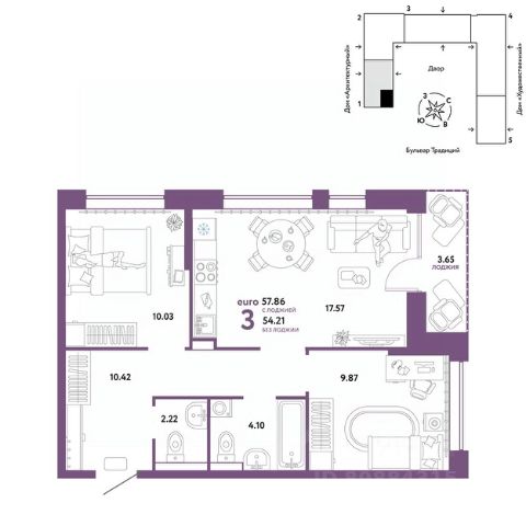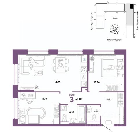 Новая квартира в ЖК "Домашний" напрямую от федеральной группы компаний "Страна Девелопмент". Финансовый партнер — банк "ДОМ.РФ". Продается 3комнатная квартира на 9 этаже от застройщика Страна Девелопмент. Площадь квартиры 60,65 кв. м. ЖК "ДОМАШНИЙ" Жилой комплекс "Домашний" это первый цифровой район в Сибири, где жители заходят в парадные по Face ID, автомобили заезжают в паркинг по сканированию номера, а лифт автоматически спускается на первый этаж при открытии домофона. Даже во дворах — USB-розетки и беседки с подогревом. ПРЕИМУЩЕСТВА - Школа, зеленый сквер и пешеходный бульвар прямо внутри квартала - Закрытые дворы у каждого дома для активного и спокойного отдыха - Охрана, видеонаблюдение 24/7 и доступ к камерам в мобильном приложении - Сквозные парадные с прозрачными входными группами, колясочными и велосипедными - Паркинг с въездом по считыванию номеров, системой контроля выбросов CO2, тележками для покупок и велопарковкой - Торговая галерея на первом этаже дома ОТДЕЛКА Квартиры сдаются с предчистовой отделкой: произведена разводка электричества и отопления, выполнена стяжка пола, стены выровнены "под маяк", установлены розетки, выключатели и радиаторы. ДИЗАЙНЕРСКАЯ ОТДЕЛКА При покупке квартиры в ЖК "Домашний" можно включить стоимость ремонта в ипотеку. Пять вариантов на выбор: Хлопковая нить, Серый шторм, Белый камень, Шалфей, Голубой вереск. СПОСОБЫ ПОКУПКИ Сотрудники "Страна Девелопмент" будут сопровождать вас на каждом этапе сделки, помогут получить одобрение по ипотеке или снизить ежемесячный платеж. - ипотека - материнский капитал -100% оплата наличными