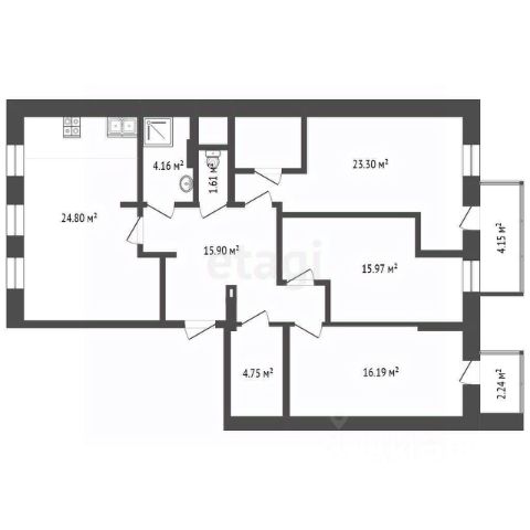Две изолированные комнаты детская и взрослая спальни, кухня-гостиная, остекленный балкон, раздельный санузел.