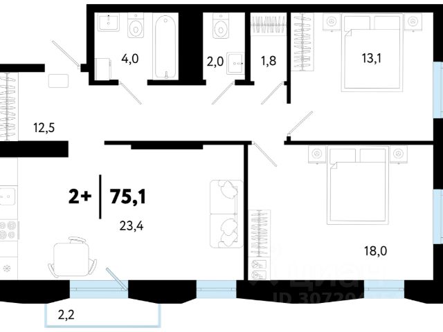 Идентификатор квартиры по базе застройщика: РСП-02-1-1. #Z569M8