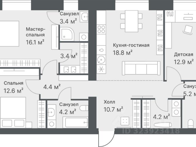 3-комн. квартира с предчистовой отделкой в ЖК "Прео" на 2 этаже. Общая площадь: 98.52 кв.м., жилая: 42.81 кв.м., площадь просторной кухни-столовой: 23.8 кв.м. Угловая квартира, очень светлая, естественная вентиляция при открытии окон. В квартире одна лоджия, два совмещенных санузла. Высота потолков 2.7 м.