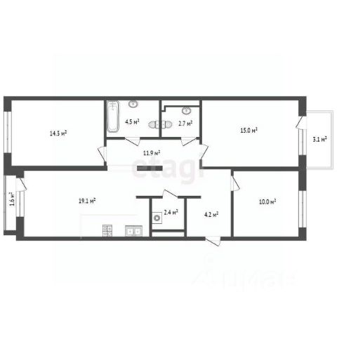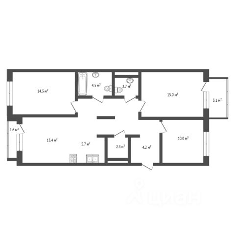 Функциональная гармоничная планировка, просто мечта, лучшая в этом доме, в ней сочетаются все самые частые пожелания покупателей!