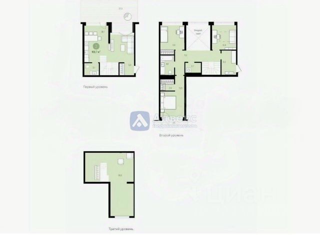 Просторная прихожая квадратной формы, где удобно расположить зоны хранения, ближайшая ко входу комната - кухня-столовая-гостиная почти 21 кв.м с витражным окном и французским балконом, гостевой сан.узел, по левую сторону две детских комнаты почти по 11 кв.м, по правую большая мастер-спальня 16.7 кв.м с витражным окном и ещё одним французским балконом, между комнатами располагается большой приватный сан.узел и гардеробная комната (она может стать так же хозяйственно-постирочной).