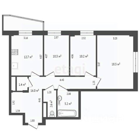 По факту площадь квартиры без площади балкона 46,3 кв.м (убран встроенный шкаф — на его месте стоит шкаф купе...на фото видно).