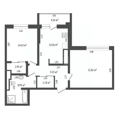 Функциональная гармоничная планировка, просто мечта, лучшая в этом доме, в ней сочетаются все самые частые пожелания покупателей!