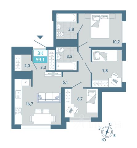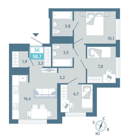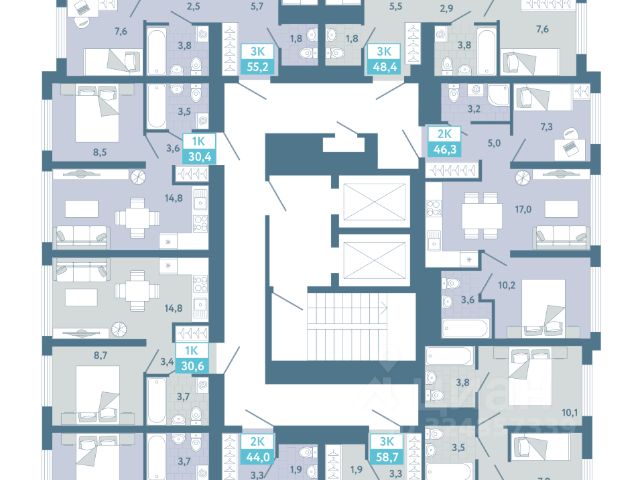 Жилой комплекс "Айрис" — это: - фиджитал-квартал в Тюмени - дома высотой от 7 до 25 этажей - квартиры с системой "Умный дом" - цифровые технологии как элемент благоустройства Окружение В нескольких минутах ходьбы от дома — парк "Комарово" с волейбольной площадкой, открытым кинотеатром, зонами для барбекю и катком. Неподалеку от Airis находится центр иппотерапии, где можно покататься на лошадях и взять уроки верховой езды. На территории Airis появится собственный парк с прогулочными аллеями. Инфраструктура В 5-10 минутах от квартала открыты 2 детских сада и гимназия. На шопинг можно отправиться в торговые комплексы "Колумб" и "Кристалл" — они находятся недалеко от дома. Благоустройство Уютный двор — приватное пространство для жителей. В беседках можно будет почитать книгу в тишине, а в тени деревьев устроиться на пикник. На крыше многоуровневого паркинга будет лаунж-зона с кинотеатром, баскетбольная площадка и воркаут-пространство, где можно позаниматься с виртуальным тренером — достаточно отсканировать код. Лобби Интерьеры лобби выполнены в пастельных тонах с элементами фиджитал-решений. Для отдыха и ожидания гостей создана лаунж-зона. Также есть гостевые санузлы. Колясочные Возвращайтесь налегке после прогулки с малышом — оставить коляску можно в специальном помещении на первом этаже. Кладовые Для сезонных и габаритных вещей предусмотрены отдельные кладовые на цокольном этаже. В каждом помещении уже проведено электричество и выполнена стяжка пола. Паркинг На территории — два многоуровневых наземных паркинга. Один из них примыкает к домам — из него можно напрямую пройти в парадные. Планировки Планировки квартала — от компактной студии до сити-хауса с собственным палисадником — соответствуют любым жизненным сценариям. Можно выбрать квартиры с террасами и готовыми дизайнерскими интерьерами.