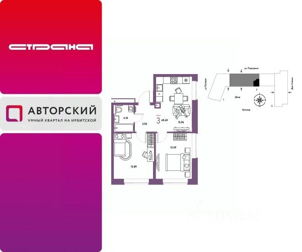 Новая квартира в ЖК "Авторский" напрямую от федерального застройщика "Страна Девелопмент". Продается 3комнатная квартира на 16 этаже от застройщика Страна Девелопмент. Площадь квартиры 49,13 кв. м. Жилой комплекс "Авторский" — квартал для авторов своей жизни от федерального застройщика "Страна Девелопмент" вблизи исторического центра — до Моста Влюблённых 4 минуты на авто, а ещё рядом ведущие вузы Тюмени. Преимущества • Тематический бульвар объединяет дома и закрытые дворы квартала в единую экосистему: зелень, перголы для отдыха, детские и спортивные площадки. По вечерам бульвар преображается: освещение создаёт уютную атмосферу. • Новый детский сад рядом, который появится в 2026 году прямо в одном из корпусов комплекса. В нём выделено 150 мест для малышей. • Во дворах нет машин, шума, выхлопных газов и посторонних людей. Всё пространство разделено на зоны по интересам и возрастам. Для детей — игровые площадки из эко-материалов и мягкая защита от падений. Для взрослых — зоны отдыха, воркаут-площадки и тропинки для неспешных прогулок. Отделка Квартиры сдаются с предчистовой отделкой: произведена разводка электричества и отопления, выполнена стяжка пола, стены выровнены "под маяк", установлены радиаторы. Способы покупки Сотрудники "Страна Девелопмент" будут сопровождать вас на каждом этапе сделки, помогут получить одобрение по ипотеке или снизить ежемесячный платеж. - ипотека - рассрочка - с использованием материнского капитала -100% оплата наличными
