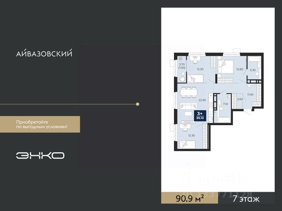 Продается 3-комн. квартира с предчистовой отделкой в ЖК "Айвазовский" на 7 этаже. Общая площадь: 86.04 кв.м., жилая: 39.66 кв.м., площадь просторной кухни-столовой: 22.06 кв.м. Угловая квартира, очень светлая, естественная вентиляция при открытии окон. В квартире один совмещенный и один раздельный санузел. Высота потолков 2.7 м. Дом монолитный, многоподъездный, высотой 24 этажа. Квартира находится в 4-й секции в корпусе ГП-12. На этаже 5 квартир. В подъезде 1 пассажирский и 1 грузовой лифт. Окончание строительства - 4 квартал 2028 года. Оформление сделки по договору долевого участия. Новый жилой район располагается в живописном месте на берегу Туры в центральной части города. Принципиально новое пространство для жизни в центре современного города для тех, чьи мечты сбываются, кто нацелен на постоянный рост, перемены к лучшему для себя и своих близких. Каждая деталь ЖК "Айвазовский" вдохновляет и заряжает на новые свершения: авторская архитектура, сбалансированная продуманная инфраструктура, дизайнерские дворы со спортивными и детскими площадками, парковые зоны с фонтанами, водный канал, украшающий центральный прогулочный маршрут района и многое другое. В 2019 года проект стал лауреатом престижной премии Urban Awards 2019 в номинации "Лучший строящийся региональный жилой комплекс бизнес-класса". Главная особенность Айвазовский - соседство разных архитектурных школ в рамках одного дома. Изысканная классика, выразительная эклектика и оригинальный модерн - жить в одном из таких домов настоящий повод для гордости. Айвазовский это идеальное сочетание комфорта, технологий и развитой инфраструктуры. Вход в подъезд возможен с улицы и со двора. Отправляясь на работу или за покупками, жители могут выйти с внешней стороны дома, а для прогулки с ребенком со стороны двора. Экологически чистые материалы и энергосберегающие технологии, качественное освещение общественных зон, видеонаблюдение по всей территории жилого района (в том числе в подъездах, лифтах и в подземном паркинге), закрытые дворы с доступом только для жителей Айвазовский. Часть домов в Айвазовский будут оснащены подземным паркингом. Востребованный в нашем климатическом поясе формат хранения автомобилей защитит собственность владельца в любое время года. Аккредитация в банках: ПАО "Газпромбанк", "Сбербанк России", ОАО "Альфа-Банк", ПАО Банк "ВТБ", ПАО "Совкомбанк" и других. #2meldb Продам 3-комнатную квартиру 3-комнатных квартир в Айвазовский в Тюмени.