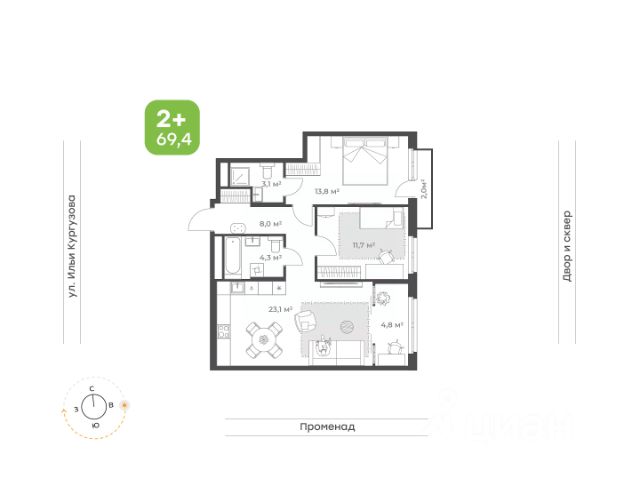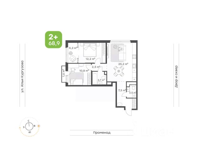 Квартира 2+ с окнами на 2 стороны Самая популярная по спросу квартира это квартира с окнами на 2 стороны света! Здесь идеально все! • Просторная кухня-гостиная правильной формы • Спальня с французским балконом • Два удобных санузла, где вместится все необходимое • Вместительный коридор