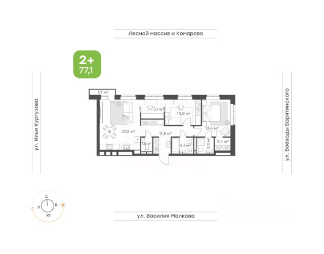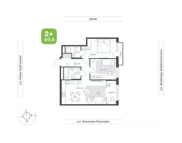 Продается квартира формата 2+ в ЖК "Ботаника".
