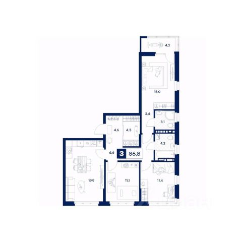 Продаётся 3-комнатная квартира в строящемся доме (ГП-1), срок сдачи: II-кв. 2026, общей площадью 86.8 кв.м., на 16 этаже. Дом Нойферта - это проект, созданный в соответствии с принципами, которые когда-то в 1936 году заложил Эрнст Нойферт. Здесь вы не найдете ни одной плохой планировки. В каждую комнату легко помещается мебель, которая в ней должны быть, а человеку остается пространство нужное для перемещения или для какого-то соответствующего времяпрепровождения. Эрнст Нойферт. Его называют отцом эргономики. Он - автор книги "Строительное проектирование", в которой впервые были систематизированы все подходы к созданию пространственных и планировочных решений. Именно Эрнст Нойферт научно определил, какими должны быть планировки. Для этого главным героем книги он выбрал человека, чья жизнь была полностью описана с точки зрения площадей и расстояний, которые нужны для комфортного обитания и для самых разных занятий. Квартиры с террасами и хайфлеты Статус каждого дома соответствует тому, какие квартиры в нем есть. В нашем доме есть особые квартиры. Это двухэтажные хайфлэты с огромными окнами, а также целый этаж квартир с террасами. Они задают уровень объекта. Нет студий и маленьких квартир В Доме Нойферта нет квартир-студий. Во-первых, это связано с тем, что в трудах Эрнста Нойферта не описаны подобные квартиры. Во-вторых это и наше решение. Мы не проектировали временное жилье или то, что кто-то купит для сдачи в аренду. У нас есть квартиры только для полноценной жизни.