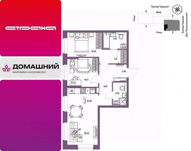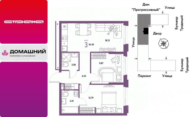 Объявление от застройщика Страна Девелопмент. Покупка квартиры защищена банком. Продается 3комнатная квартира на 12 этаже от застройщика Страна Девелопмент. Площадь квартиры 54,35 кв. м. ЖК "ДОМАШНИЙ" Жилой комплекс "Домашний" это первый цифровой район в Сибири, где жители заходят в парадные по Face ID, автомобили заезжают в паркинг по сканированию номера, а лифт автоматически спускается на первый этаж при открытии домофона. Даже во дворах — USB-розетки и беседки с подогревом. ПРЕИМУЩЕСТВА -Школа, зеленый сквер и пешеходный бульвар прямо внутри квартала -Закрытые дворы у каждого дома для активного и спокойного отдыха -Охрана, видеонаблюдение 24/7 и доступ к камерам в мобильном приложении -Сквозные парадные с прозрачными входными группами, колясочными и велосипедными -Паркинг с въездом по считыванию номеров, системой контроля выбросов CO2, тележками для покупок и велопарковкой -Торговая галерея на первом этаже дома ОТДЕЛКА Квартиры сдаются с предчистовой отделкой: произведена разводка электричества и отопления, выполнена стяжка пола, стены выровнены "под маяк", установлены розетки, выключатели и радиаторы. ДИЗАЙНЕРСКАЯ ОТДЕЛКА При покупке квартиры в ЖК "Домашний" можно включить стоимость ремонта в ипотеку. Пять вариантов на выбор: Хлопковая нить, Серый шторм, Белый камень, Шалфей, Голубой вереск. СПОСОБЫ ПОКУПКИ Сотрудники "Страна Девелопмент" будут сопровождать вас на каждом этапе сделки, помогут получить одобрение по ипотеке или снизить ежемесячный платеж. - ипотека - материнский капитал -100% оплата наличными