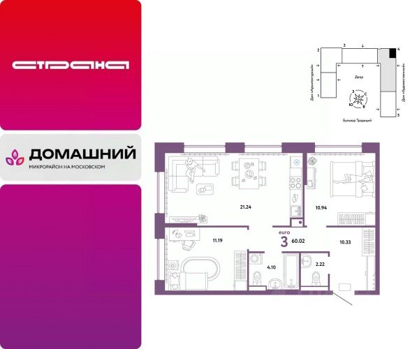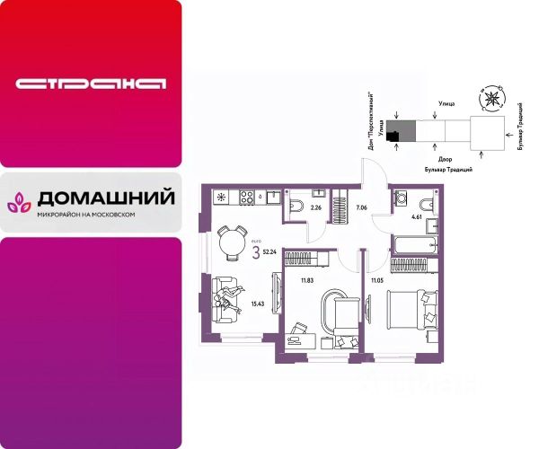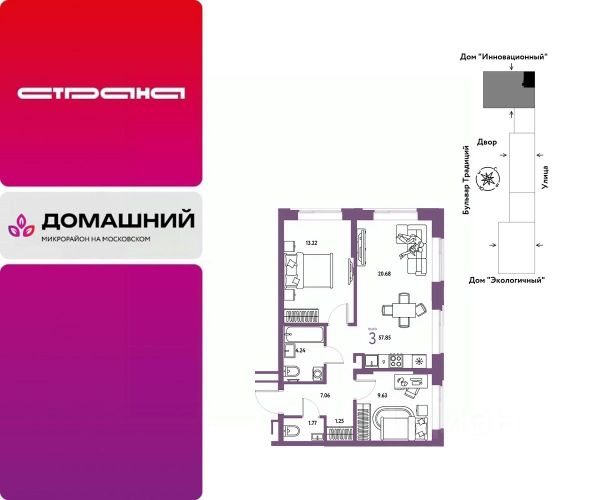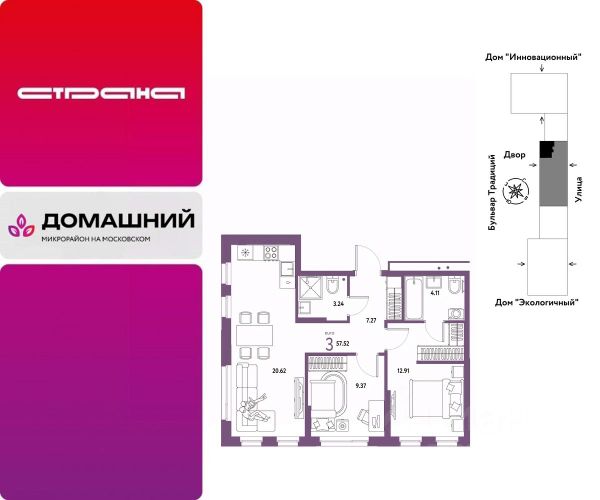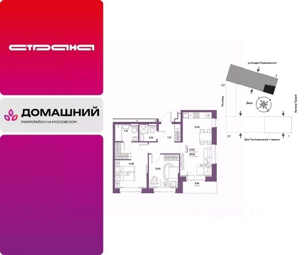 Объявление от застройщика Страна Девелопмент. Покупка квартиры защищена банком. Продается 3комнатная квартира на 13 этаже от застройщика Страна Девелопмент. Площадь квартиры 58,51 кв. м. О ПРOЕКТЕ Mикpорайон "Домaшний" — этo 6 очередей стpоитeльcтвa, 24 дома пеpемeннoй этажнoсти. Каждый дом уникальный. Внутри микрорайона появится огромный пешеходный бульвар — бульвар Традиций. Центром притяжения станут открытые пространства для отдыха жителей и гостей микрорайона, которые легко меняются под сезонные сценарии отдыха: новогодняя елка, ярмарки, кинопоказы и т.д. У каждого дома обустроен приватный двор с зонами для активного и спокойного отдыха. В активной зоне детские разновозрастные площадки с горками, песочницами и качелями, воркаут-зоны. В спокойной — скамейки, мини-амфитеатры, закрытые перголы. Уютной атмосферу сделает обильное озеленение и освещение "домашними" торшерами. ОТДЕЛКА Квартиры сдаются с предчистовой отделкой. Все грязные работы выполнены: произведена разводка электричества и отопления; выполнена стяжка пола; стены выровнены "под маяк". В квартире установлены розетки, выключатели и радиаторы. На входе — надежная стальная дверь. Вам остается только выбрать материалы и начать ремонт Доступна опция "Ремонт от застройщика". Стоимость можно включить в ипотеку. КУХНЯ С ТЕХНИКОЙ Теперь дополнительно к ремонту можно заказать кухню со встроенной техникой. Эргономику и функциональное наполнение разработали под каждую планировку. ПОЛНАЯ МЕБЛИРОВКА Больше не нужно тратить время даже на подбор, доставку и сборку мебели.Вы можете включить в стоимость квартиры с ремонтом полную меблировку. - Что входит в меблировку? - Кухня с техникой и сантехникой - Диван - Кровать - Шкаф в спальне - Шкаф в прихожей На консультации менеджер подскажет, какие акции действуют, и как получить одобрение по ипотеке с низкой ставкой. Более подробная информация по телефону. Застройщик ООО СЗ "Страна Запад". Проектные декларации на сайте наш.дом.рф.