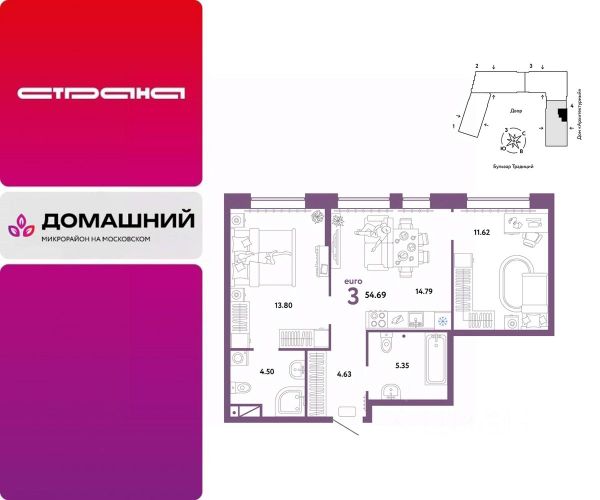 Новая квартира в ЖК "Домашний" напрямую от федеральной группы компаний "Страна Девелопмент". Финансовый партнер — банк "ДОМ.РФ". Продается 3комнатная квартира на 3 этаже от застройщика Страна Девелопмент. Площадь квартиры 60,2 кв. м. ЖК "ДОМАШНИЙ" Жилой комплекс "Домашний" это первый цифровой район в Сибири, где жители заходят в парадные по Face ID, автомобили заезжают в паркинг по сканированию номера, а лифт автоматически спускается на первый этаж при открытии домофона. Даже во дворах — USB-розетки и беседки с подогревом. ПРЕИМУЩЕСТВА -Школа, зеленый сквер и пешеходный бульвар прямо внутри квартала -Закрытые дворы у каждого дома для активного и спокойного отдыха -Охрана, видеонаблюдение 24/7 и доступ к камерам в мобильном приложении -Сквозные парадные с прозрачными входными группами, колясочными и велосипедными -Паркинг с въездом по считыванию номеров, системой контроля выбросов CO2, тележками для покупок и велопарковкой -Торговая галерея на первом этаже дома ОТДЕЛКА Квартиры сдаются с предчистовой отделкой: произведена разводка электричества и отопления, выполнена стяжка пола, стены выровнены "под маяк", установлены розетки, выключатели и радиаторы. ДИЗАЙНЕРСКАЯ ОТДЕЛКА При покупке квартиры в ЖК "Домашний" можно включить стоимость ремонта в ипотеку. Пять вариантов на выбор: Хлопковая нить, Серый шторм, Белый камень, Шалфей, Голубой вереск. СПОСОБЫ ПОКУПКИ Сотрудники "Страна Девелопмент" будут сопровождать вас на каждом этапе сделки, помогут получить одобрение по ипотеке или снизить ежемесячный платеж. - ипотека - материнский капитал -100% оплата наличными