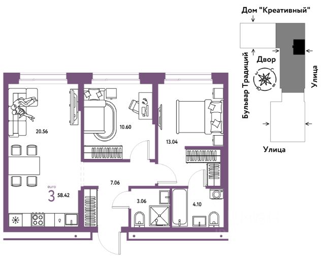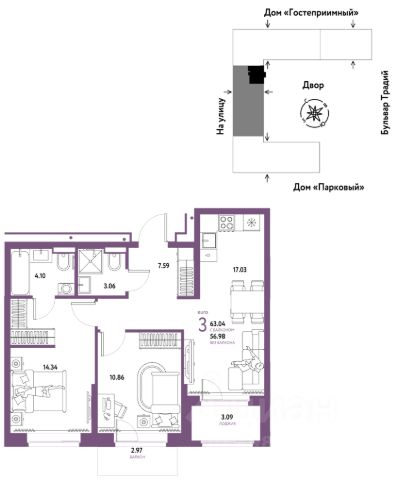 Новая квартира в ЖК "Домашний" напрямую от федеральной группы компаний "Страна Девелопмент". Финансовый партнер — банк "ДОМ.РФ". Продается 3комнатная квартира на 10 этаже от застройщика Страна Девелопмент. Площадь квартиры 63,64 кв. м. ЖК "ДОМАШНИЙ" Жилой комплекс "Домашний" это первый цифровой район в Сибири, где жители заходят в парадные по Face ID, автомобили заезжают в паркинг по сканированию номера, а лифт автоматически спускается на первый этаж при открытии домофона. Даже во дворах — USB-розетки и беседки с подогревом. ПРЕИМУЩЕСТВА -Школа, зеленый сквер и пешеходный бульвар прямо внутри квартала -Закрытые дворы у каждого дома для активного и спокойного отдыха -Охрана, видеонаблюдение 24/7 и доступ к камерам в мобильном приложении -Сквозные парадные с прозрачными входными группами, колясочными и велосипедными -Паркинг с въездом по считыванию номеров, системой контроля выбросов CO2, тележками для покупок и велопарковкой -Торговая галерея на первом этаже дома ОТДЕЛКА Квартиры сдаются с предчистовой отделкой: произведена разводка электричества и отопления, выполнена стяжка пола, стены выровнены "под маяк", установлены розетки, выключатели и радиаторы. ДИЗАЙНЕРСКАЯ ОТДЕЛКА При покупке квартиры в ЖК "Домашний" можно включить стоимость ремонта в ипотеку. Пять вариантов на выбор: Хлопковая нить, Серый шторм, Белый камень, Шалфей, Голубой вереск. СПОСОБЫ ПОКУПКИ Сотрудники "Страна Девелопмент" будут сопровождать вас на каждом этапе сделки, помогут получить одобрение по ипотеке или снизить ежемесячный платеж. - ипотека - материнский капитал -100% оплата наличными